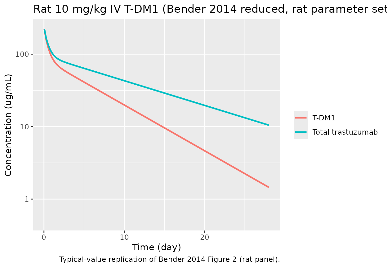 title = "Rat 10 mg/kg IV T-DM1 (Bender 2014 reduced, rat parameter set)",