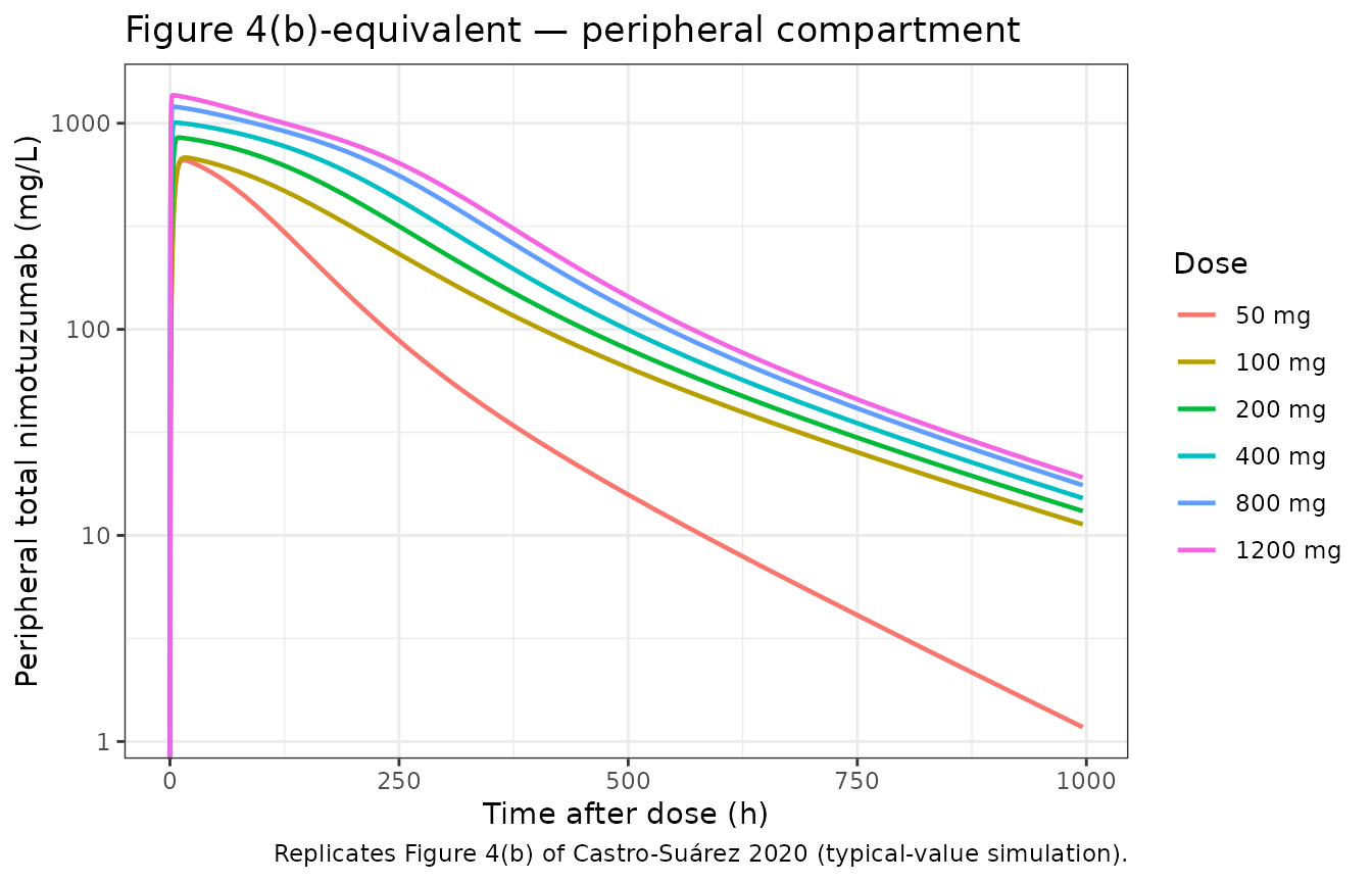 library(ggplot2)Nimotuzumab semi-mechanistic QSS TMDD population PK model (Castro-Suárez 2020)