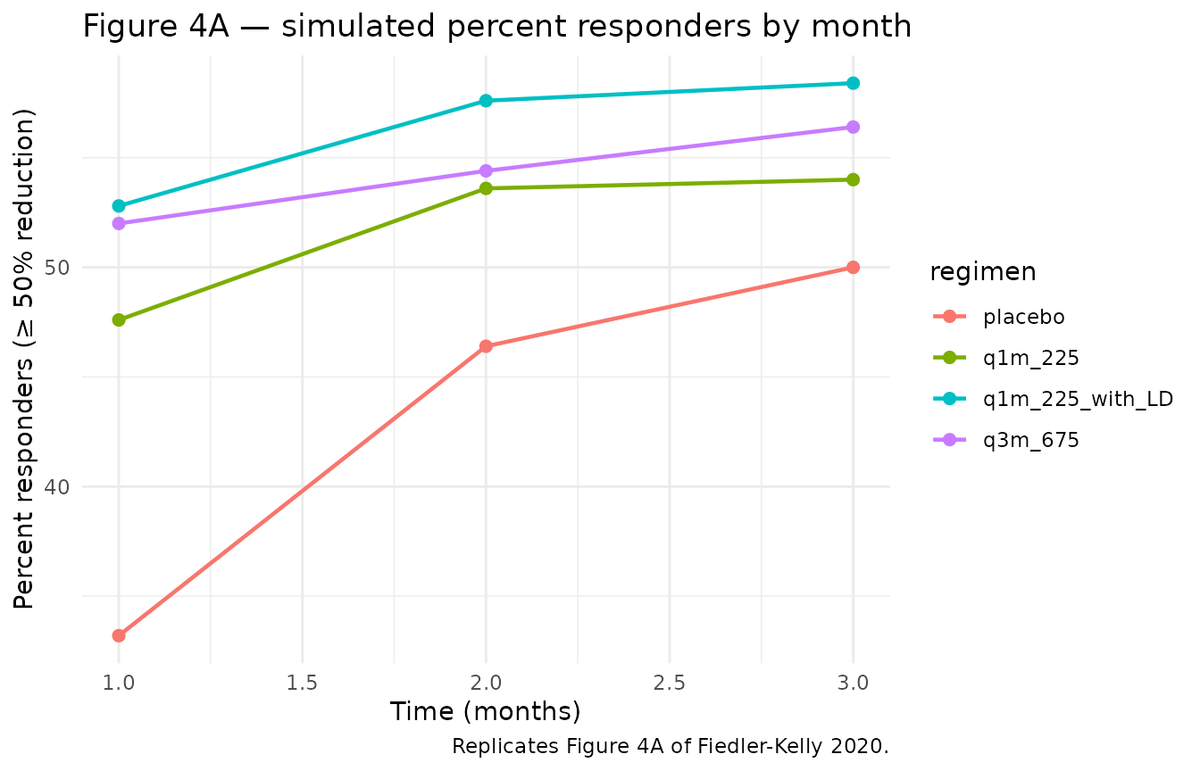 # Replicates Figure 4A of Fiedler-Kelly 2020: percent responders (>= 50%