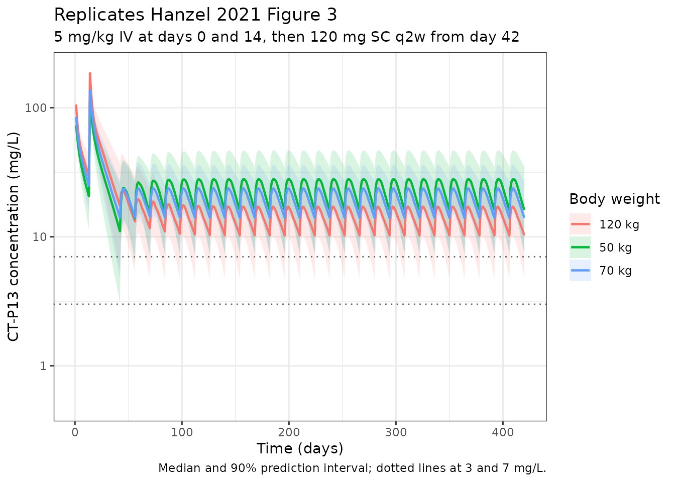 caption = "Trough coverage during 120 mg SC q2w maintenance, simulation vs Hanzel 2021."