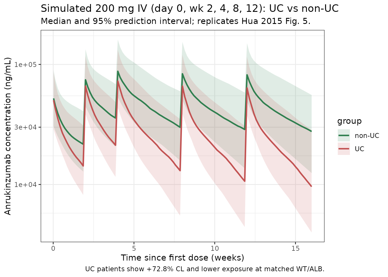 #> ℹ parameter labels from comments will be replaced by 'label()'Replicates Figure 5 (200 mg IV, UC vs non-UC)