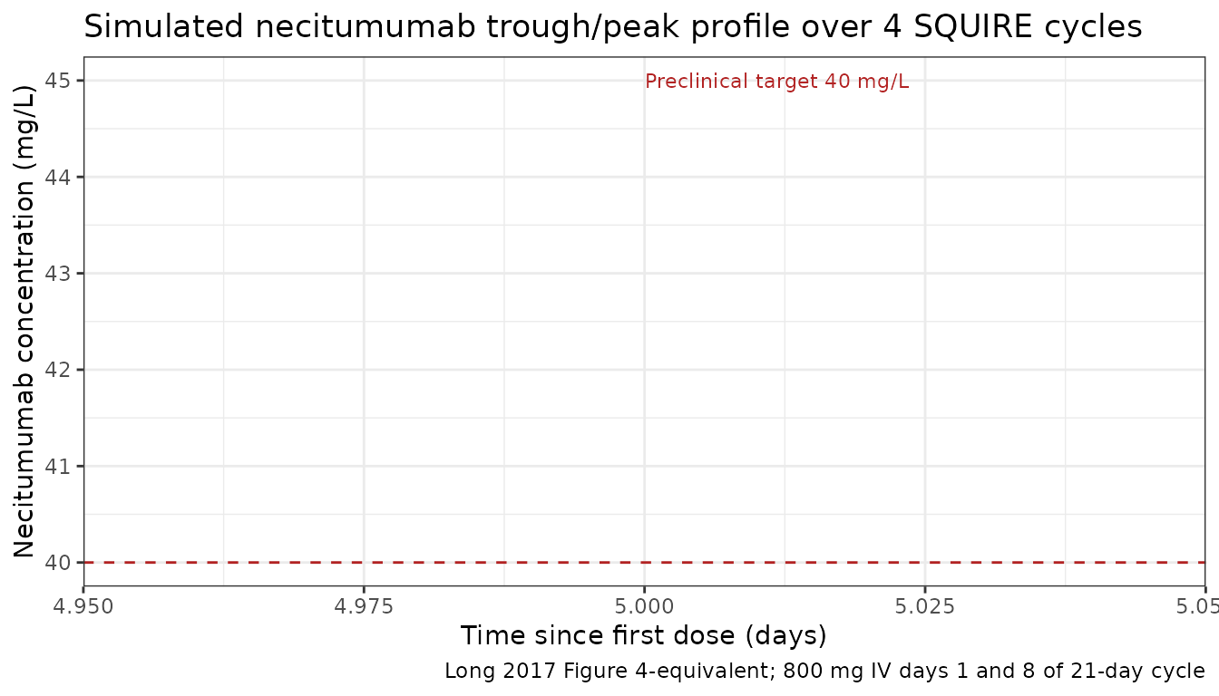title = "Simulated necitumumab trough/peak profile over 4 SQUIRE cycles",