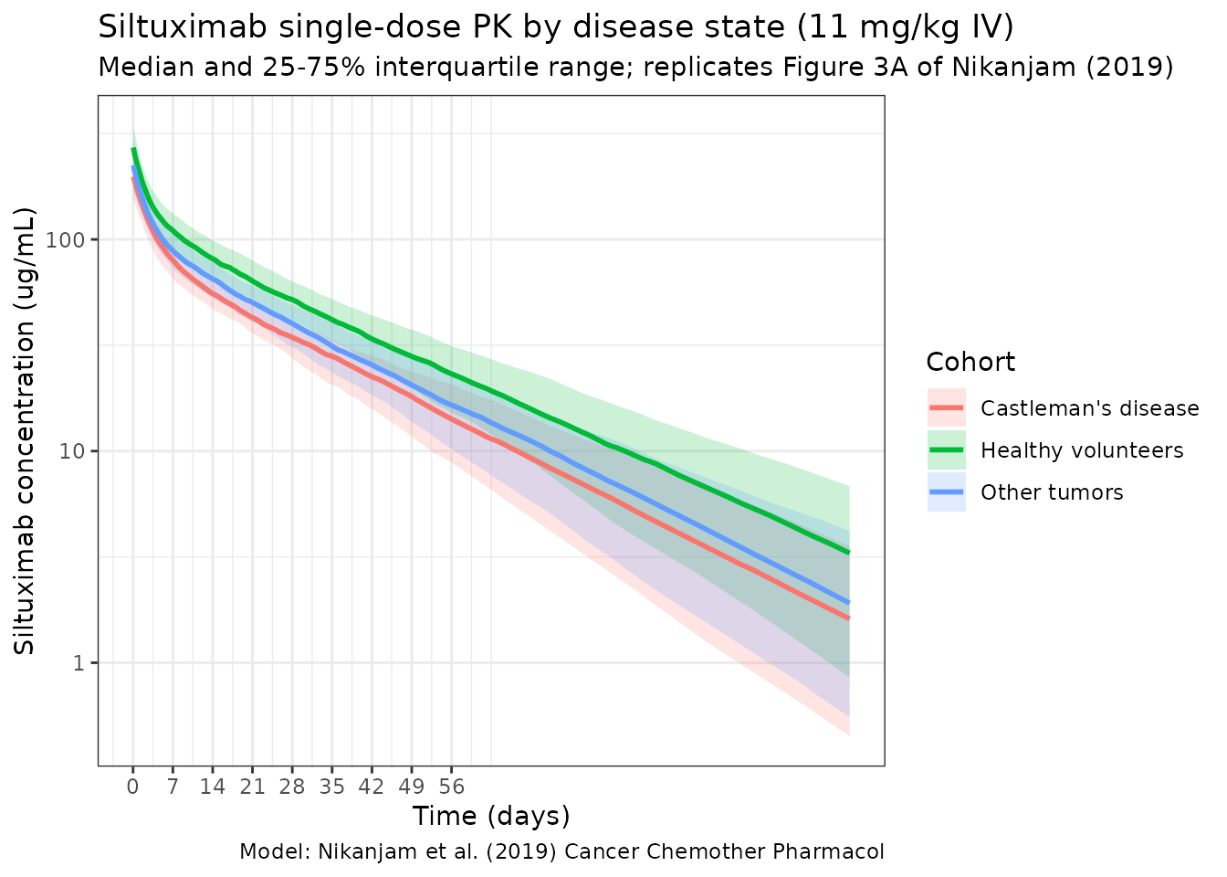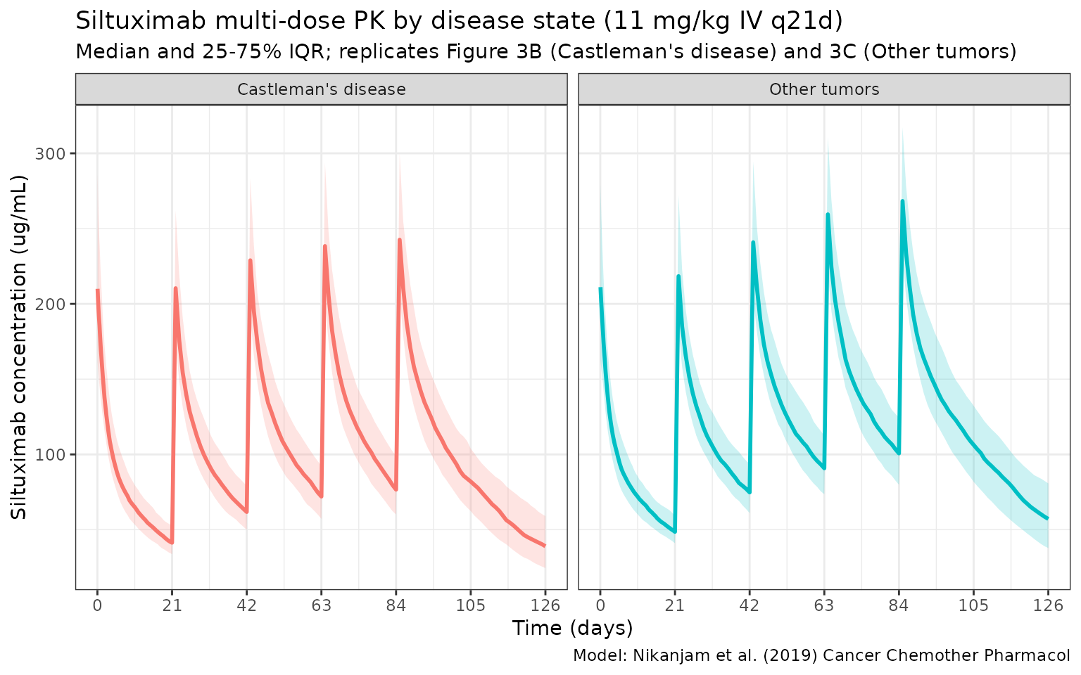 - Nikanjam M, Cho HJ, Capparelli EV. Population pharmacokinetics of siltuximab: impact of disease state. Cancer Chemother Pharmacol. 2019;84(5):993-1001. doi:10.1007/s00280-019-03939-7
