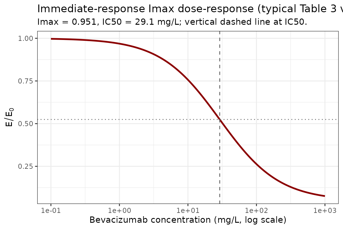 subtitle = paste0("Imax = ", imax, ", IC50 = ", ic50, " mg/L; vertical dashed line at IC50.")