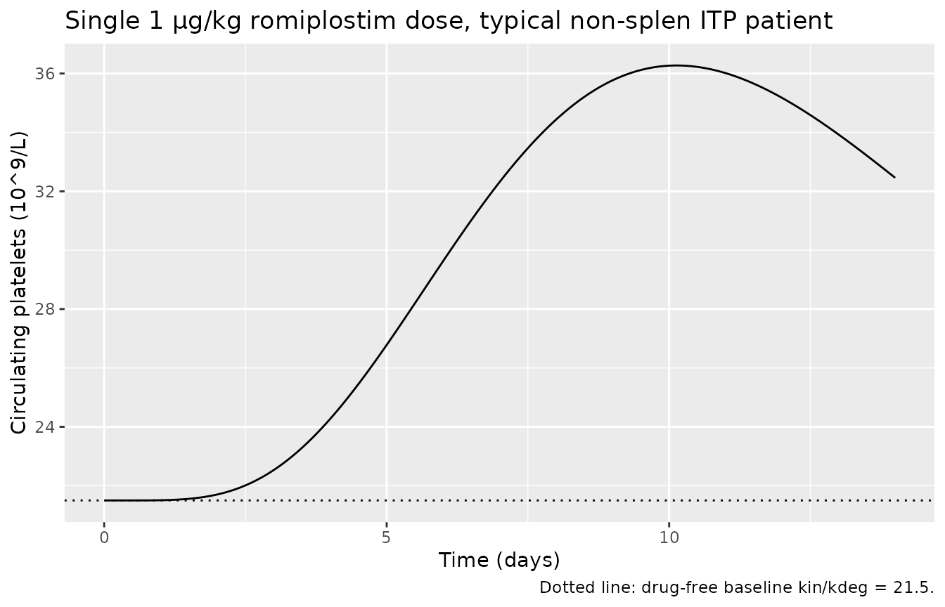 title = "Single 1 µg/kg romiplostim dose, typical non-splen ITP patient",
