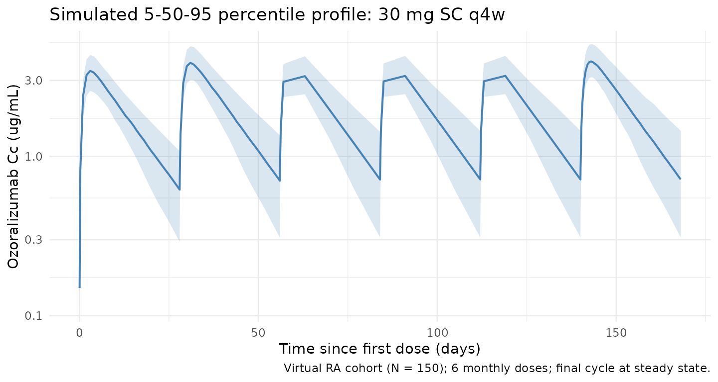 n_doses <- 6 # 6 monthly doses ~= 5 half-lives, last cycle at SS