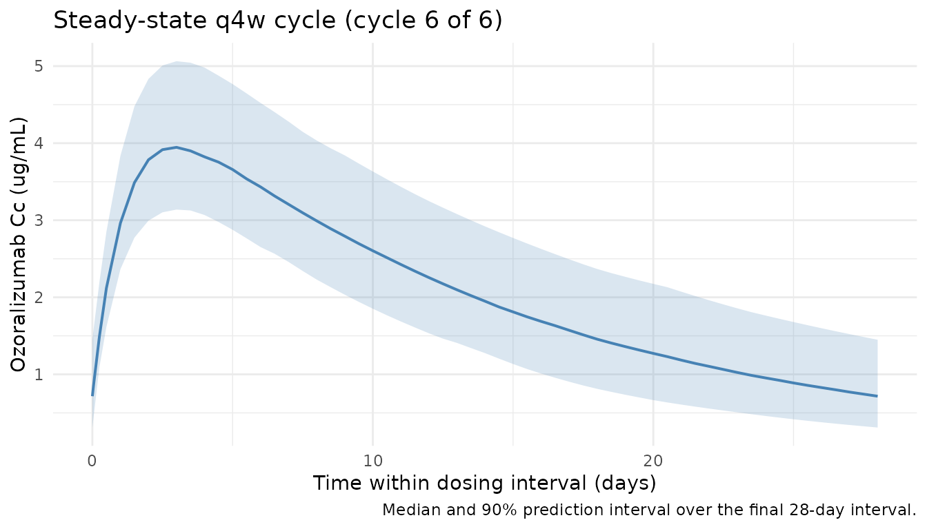 tau <- 4 * 7 * 24 # q4w dosing interval, in hours (672 h)