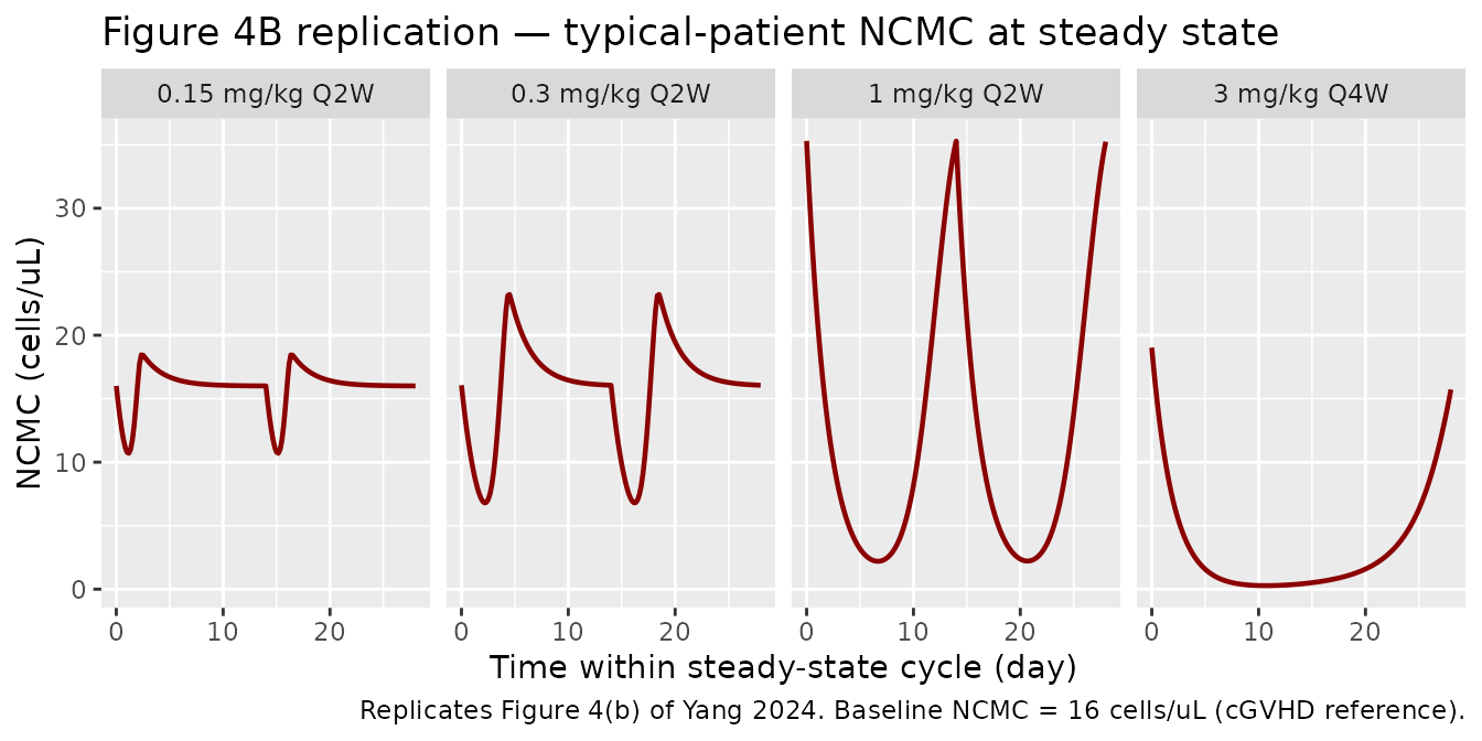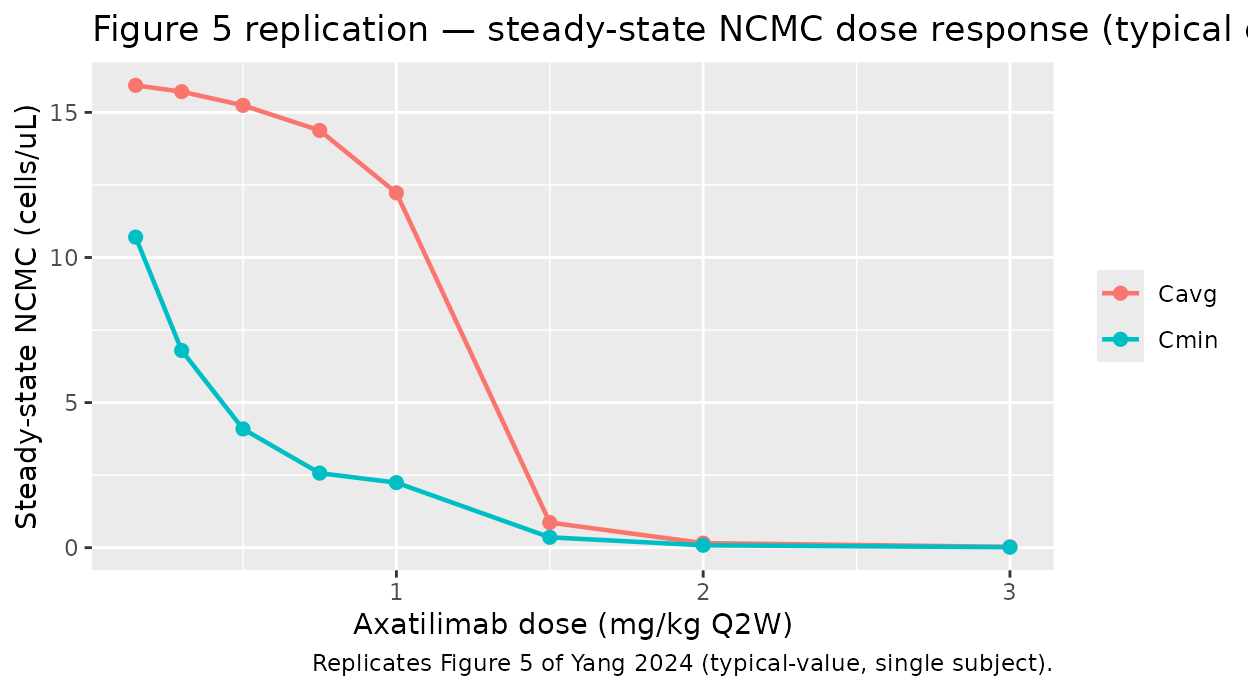 title = "Figure 5 replication — steady-state NCMC dose response (typical cGVHD patient)",