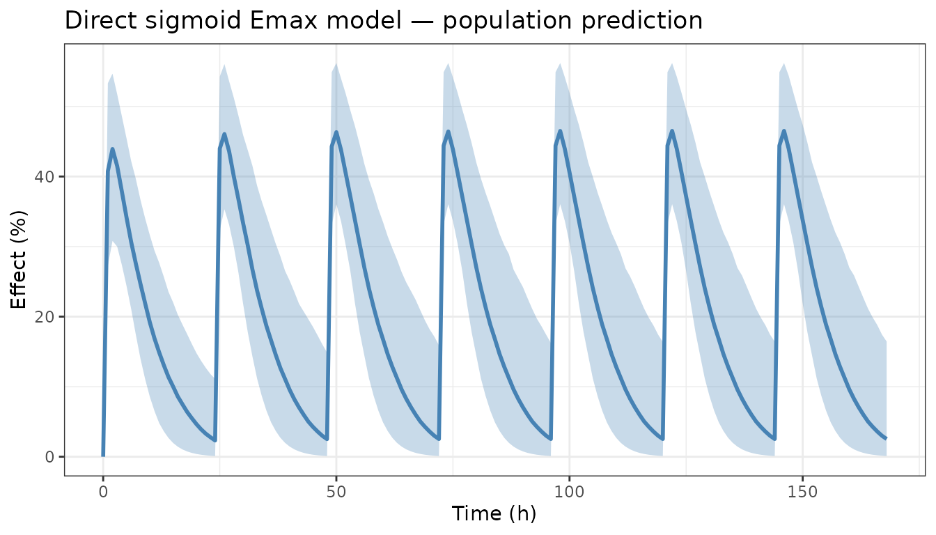 title = "Direct sigmoid Emax model — population prediction") +