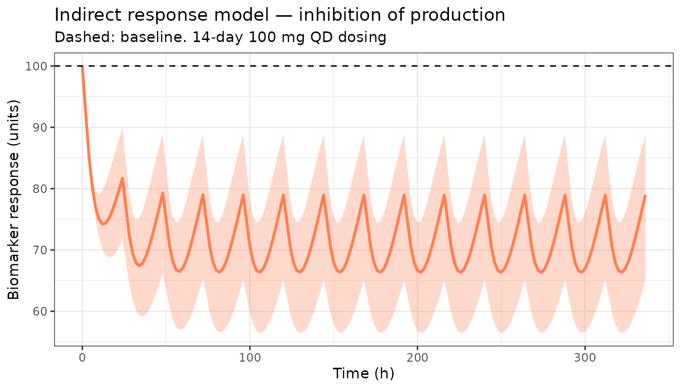 title = "Indirect response model — inhibition of production",